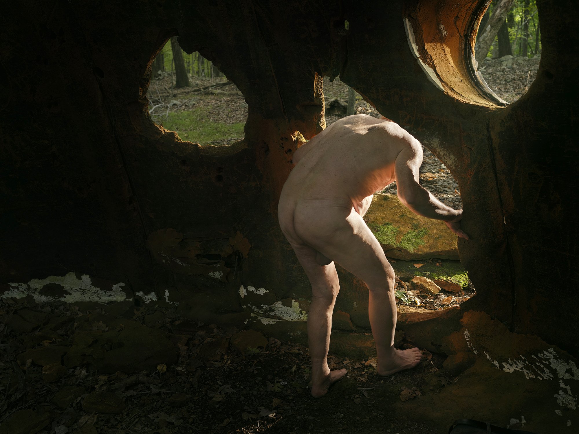 A good portion of the Alumni Magazine staff were also keen to get lost on a hike, and we had quite a group heading out to the Foam House site. Most of them left a few minutes into the session, allowing us some quiet time, and a chance to pivot to a more intimate set up. I sequestered my female assistant away from the shooting area, and we commenced the second half of the shoot with Brooks in his full-on on altogethers.