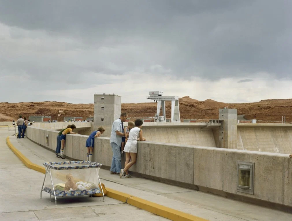 Third Image: Joel Sternfeld, Glen Canyon Dam, Page, Arizona, 1983. Traveling with an 8x10 view camera for eight years, Sternfeld shot found scenes of the USA, resulting in his seminal monograph American Propects. Many of the best pictures were shot so wide that the figures in them were almost tiny. It was a revelation to me, and inspired me to take the invitation to sometimes allow substantial space around my portrait subjects.
