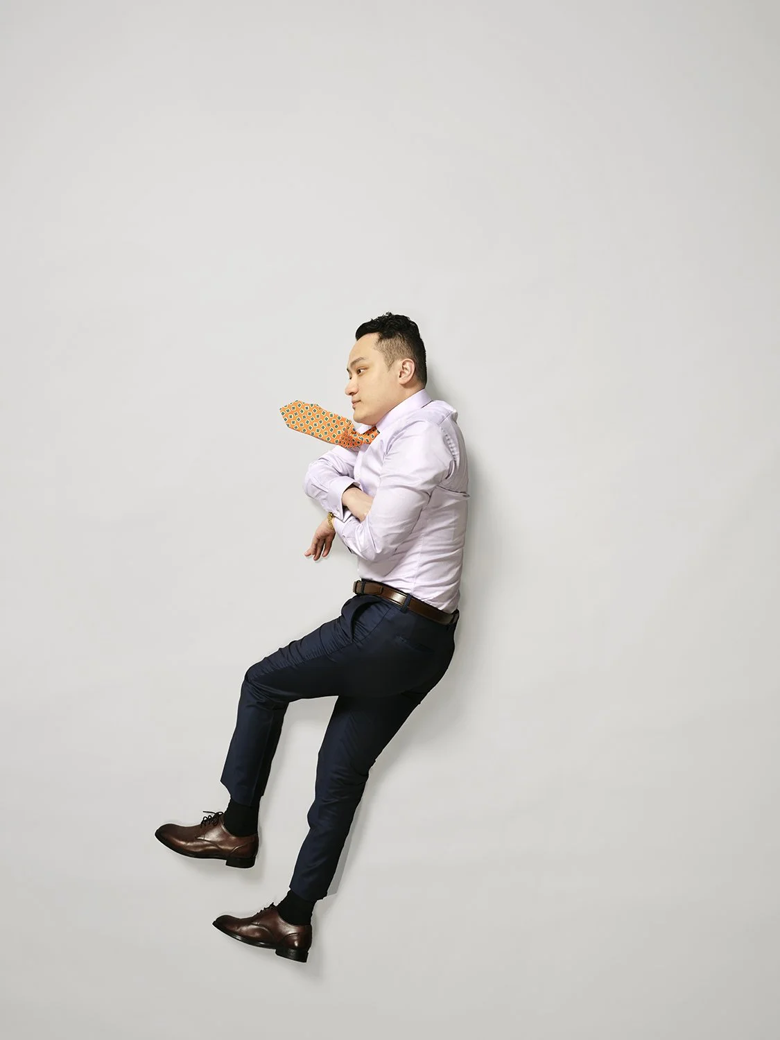 Third Image: Justin Sun, as he appears in Bloomberg Businessweek. (We shot against gray with the intention of switching the background before publication.)