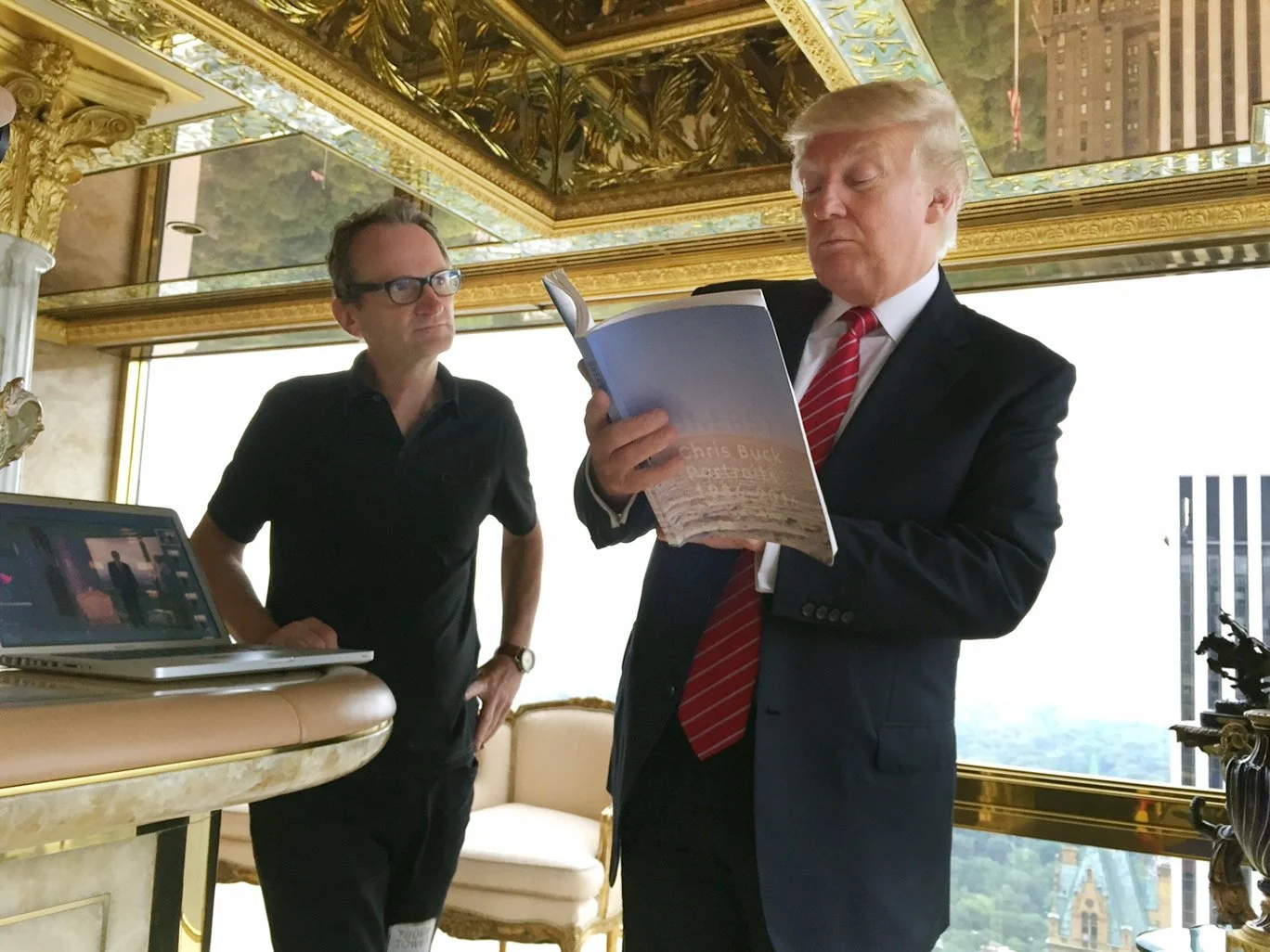 My assistant shot stills and video of us with the maquette, including Trump offering me a blurb for the back of the book. “How about, ‘Great photographer, great book!'" Sure, I’ll take it!