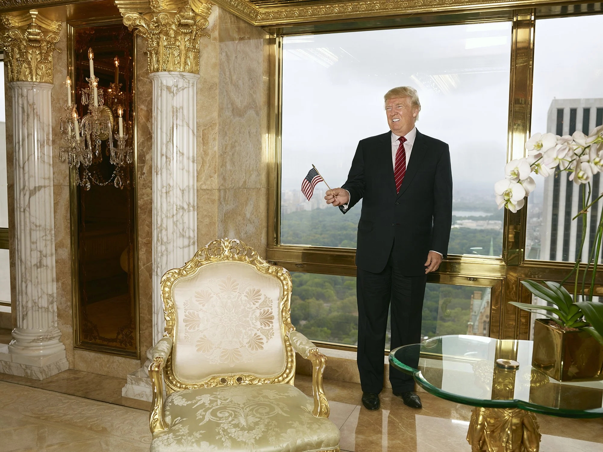 Nine years later, I was called to photograph Trump again, and he was running for president. It was for the Wall Street Journal, and we shot at Trump Tower, but this time we had access to his private quarters. We first shot in their campaign space in the basement, and then in his apartment up in the tower.